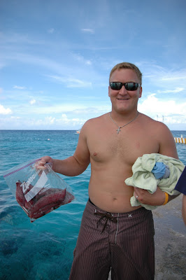 The resort said they would cook the fish for us that the guys caught if we would sign a waiver saying that they weren't responsible if we were to get sick. I think the guy is laughing because he's thinking, "these guys are crazy...eating fish they know nothing about!"