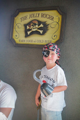 Wednesday night we went on the pirate cruise. Reid is really into pirates right now, so I knew he was going to love the show. He watches Jake and the Neverland Pirates on the Disney Chanel and walks around saying, "matey" and "arrrg!" Sissy even got into the pirate theme!